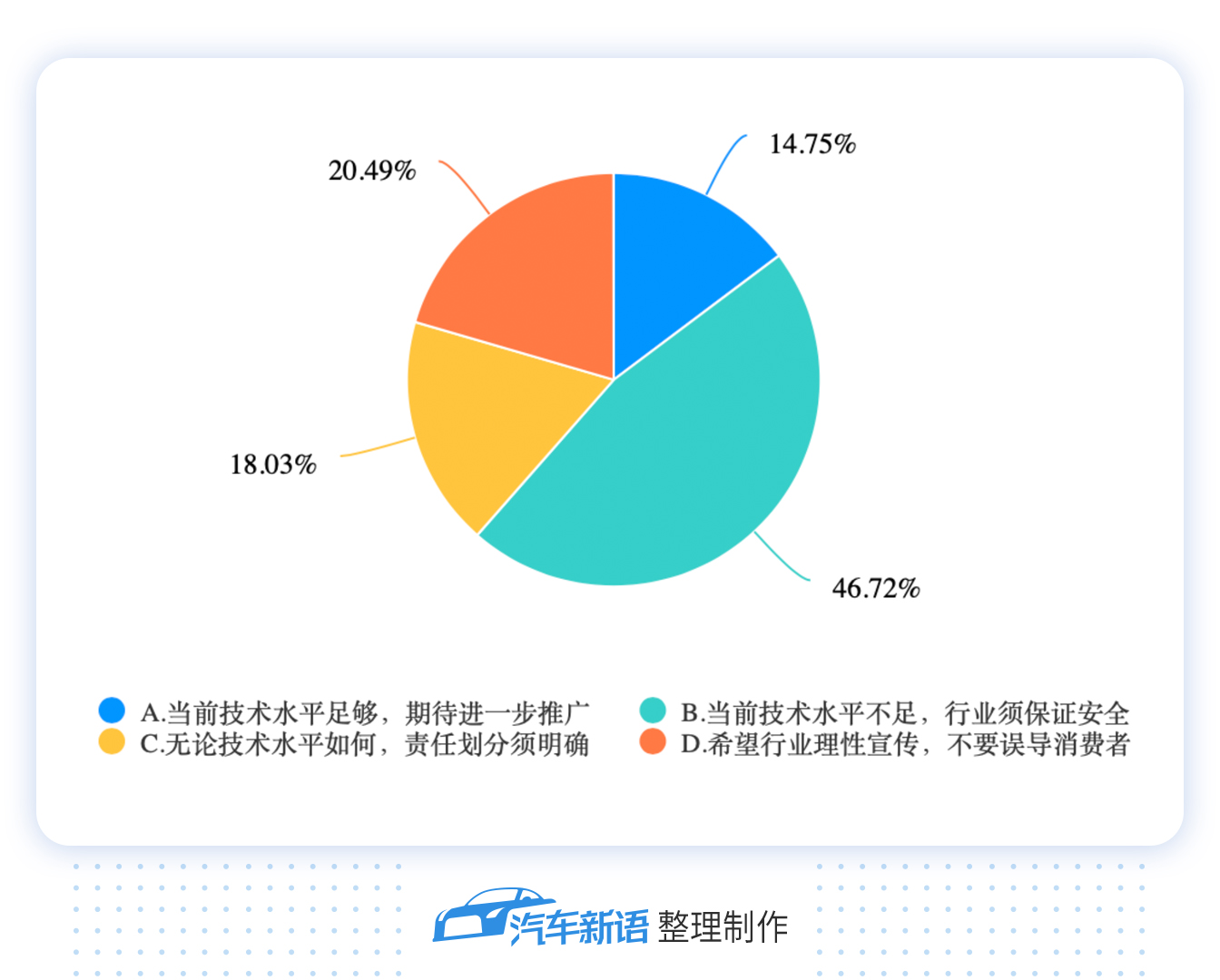 技術(shù)水平關(guān)乎行車安全,進(jìn)而引發(fā)了用戶對自動(dòng)駕駛相關(guān)政策和車輛事故責(zé)任劃分的擔(dān)憂。在上述調(diào)研中,認(rèn)為政策法規(guī)、責(zé)任劃分限制了自動(dòng)駕駛技術(shù)普及的分別占到69.67%、68.85%,緊隨技術(shù)水平之后。6qe驛資訊