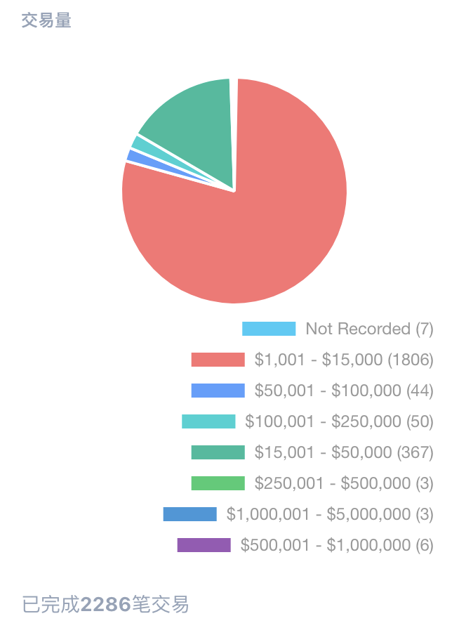 珀杜的高頻交易中,有79%為1001-15000美元的小額交易。(圖源:Senate Stock Watcher) Ezy驛資訊